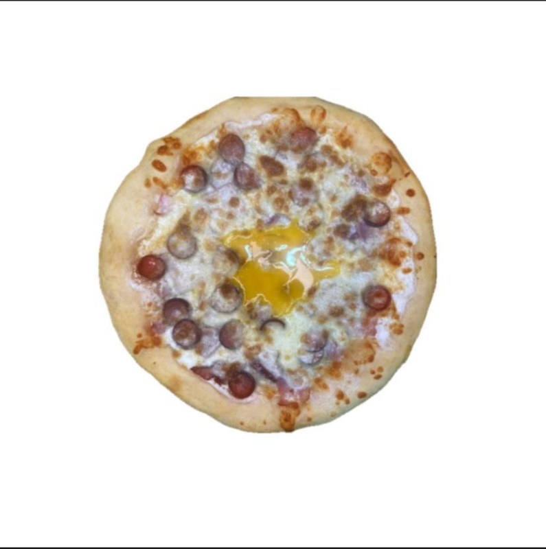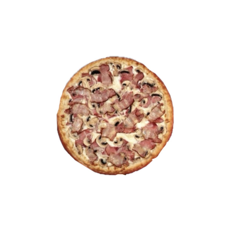 Балик, мисливські ковбаски, гриби, томати, цибуля, сир Моцарелла, томатний соус