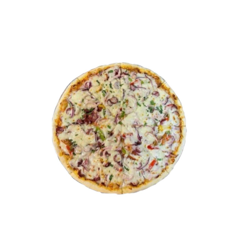 Курка копчена, балик, салямі, сир Моцарелла, цибуля, томатний соус
