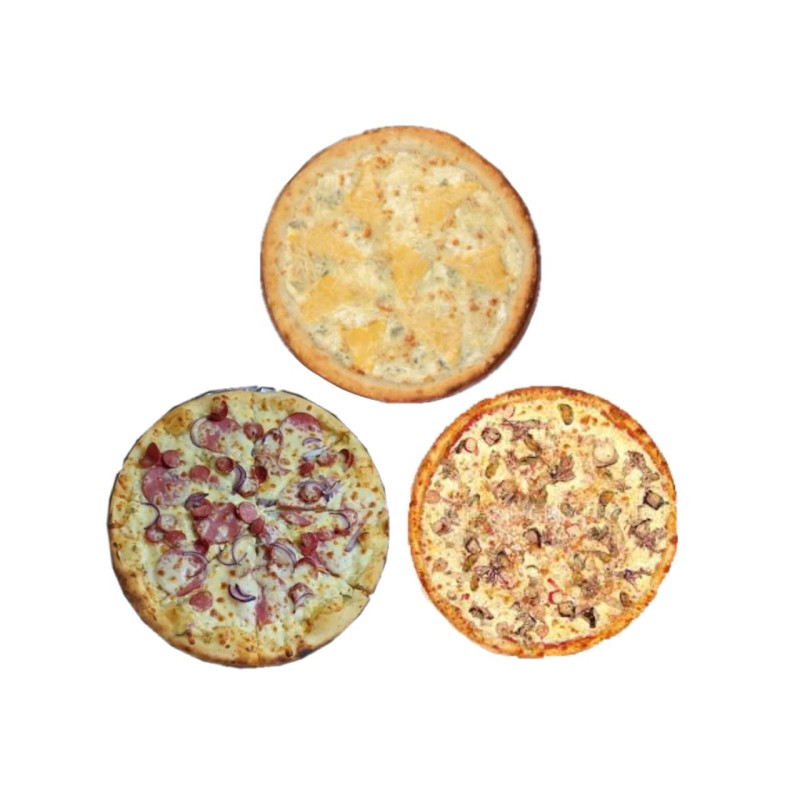 Копчена курка та болгарський перець, мисливські ковбаски та томати під сиром Моцарелла запечені на тісті з томатним соусом залишать незабутні гастрономічні спогади